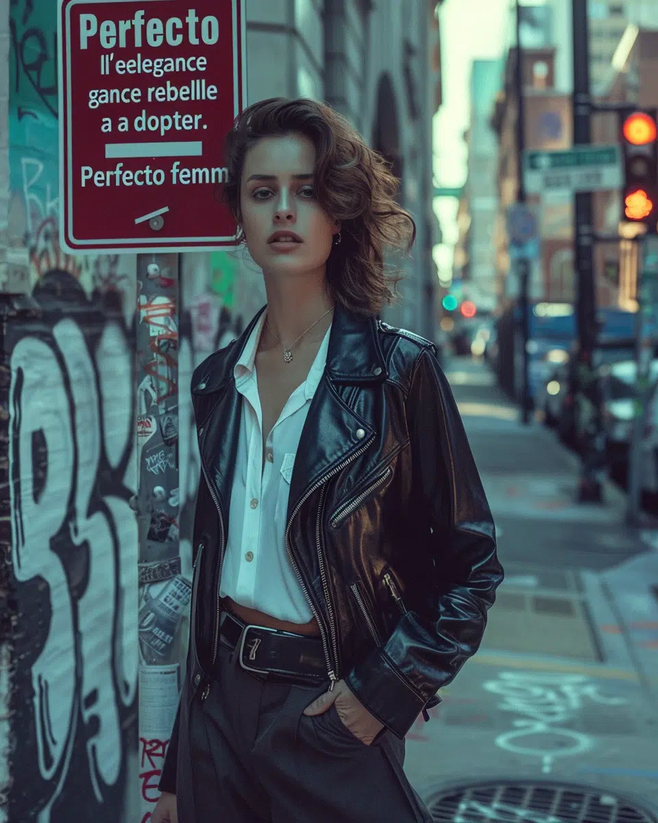 Au fil des ans, le perfecto est devenu un symbole de liberté et d'indépendance féminine, incarnant l'esprit rebelle de celles qui osent briser les conventions. Porté par des icônes telles que Marlon Brando et James Dean, il a acquis une aura de cool intemporel.